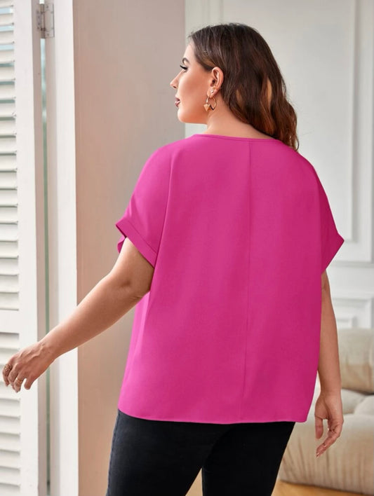 Curvy Hot Pink Elastic Sleeve Airflow Top