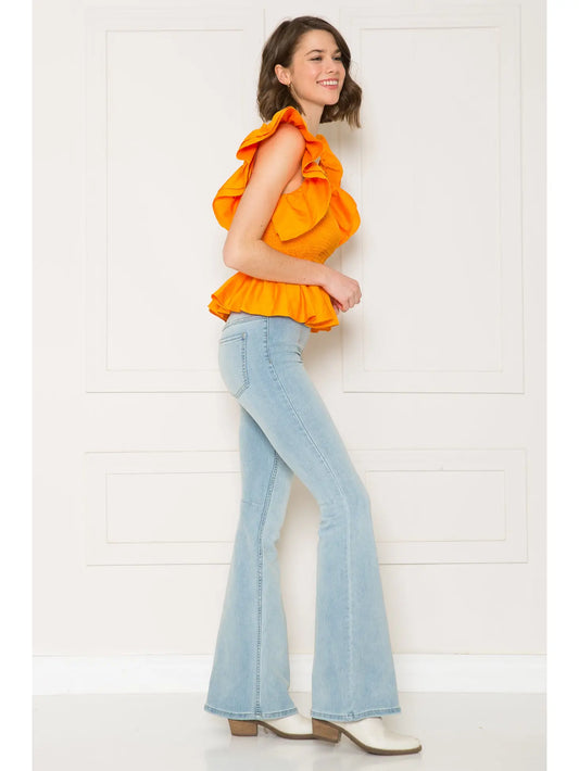 Orange Ruffled Peplum Top