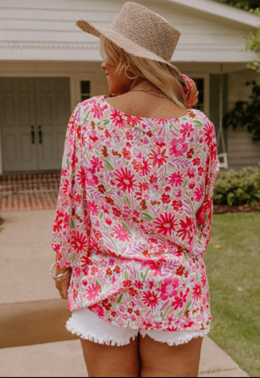 Sold outCurvy Pink Floral Half Sleeve Blouse