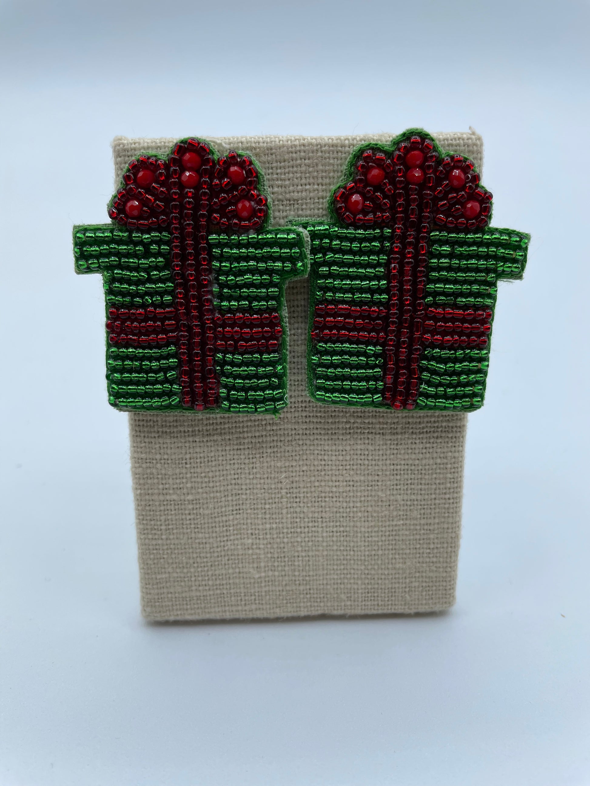 Green Christmas Package Earrings